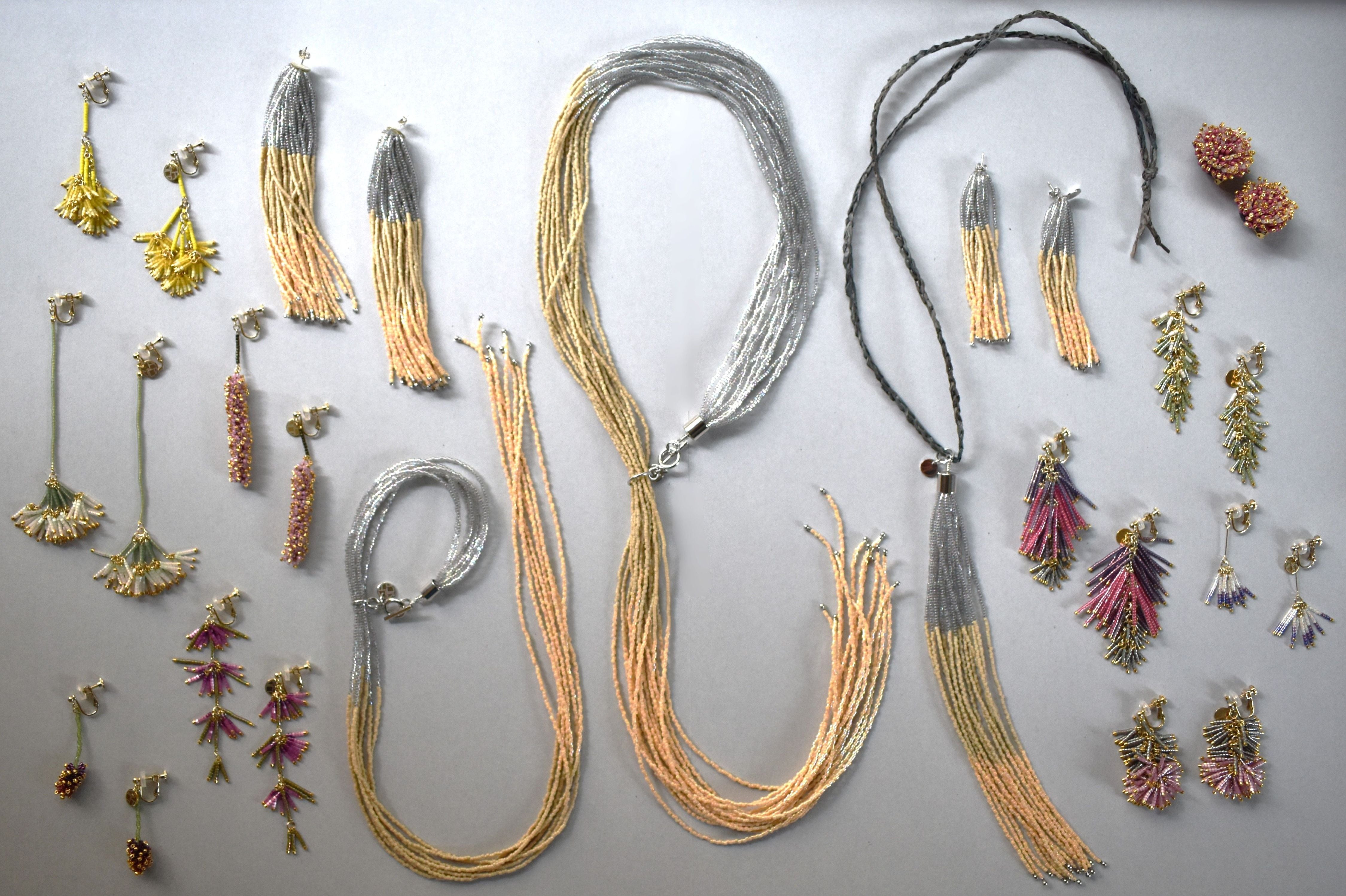 【芒】 日当たりがよく乾燥した草原に多く育つススキ銀白色の穂がやさしく揺れる草原は 日本の秋を象徴する原風景のひとつです 古来日本では 背の高い稲穂は神様が降り立つ 依り代(よりしろ)だと信じられてきたため 中秋の名月の夜 満月に模した月見団子といっしょに 供えられます --- 首飾りにも腕飾りにも変化する コーディネートがたのしい装身具 3色のビーズのグラデ―ションが 肌になじみつつ華やかに彩ります material ガラスビーズ、テグス、真鍮、チタン *シルバービーズはパラジウムッキ加工を施したものを使用しております size 約590mm weight 約21.1g *CACICOの商品は全て1点1点制作しているため、個体差があり、商品写真と差がある場合がございます。ご了承の上、ご購入ください。 *金属アレルギーの方はご使用をお控えください *受注生産のため、ご注文確定後1週間~10日以内に商品を発送いたします