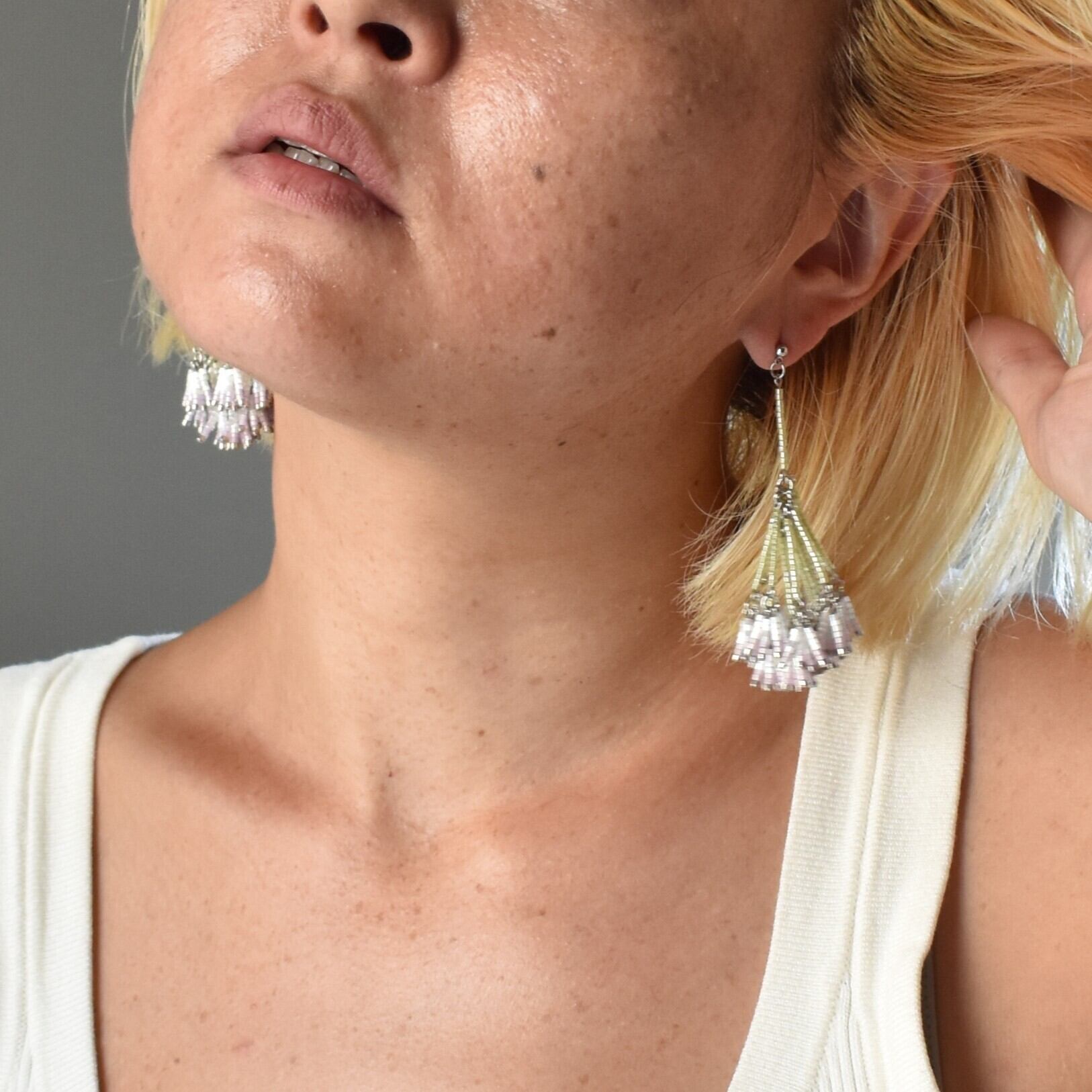 material SILVER925(ピアス金具)、SILVER925 ロジュームメッキ(イヤリング金具)、ガラスビーズ、真鍮、チタン、シリコン