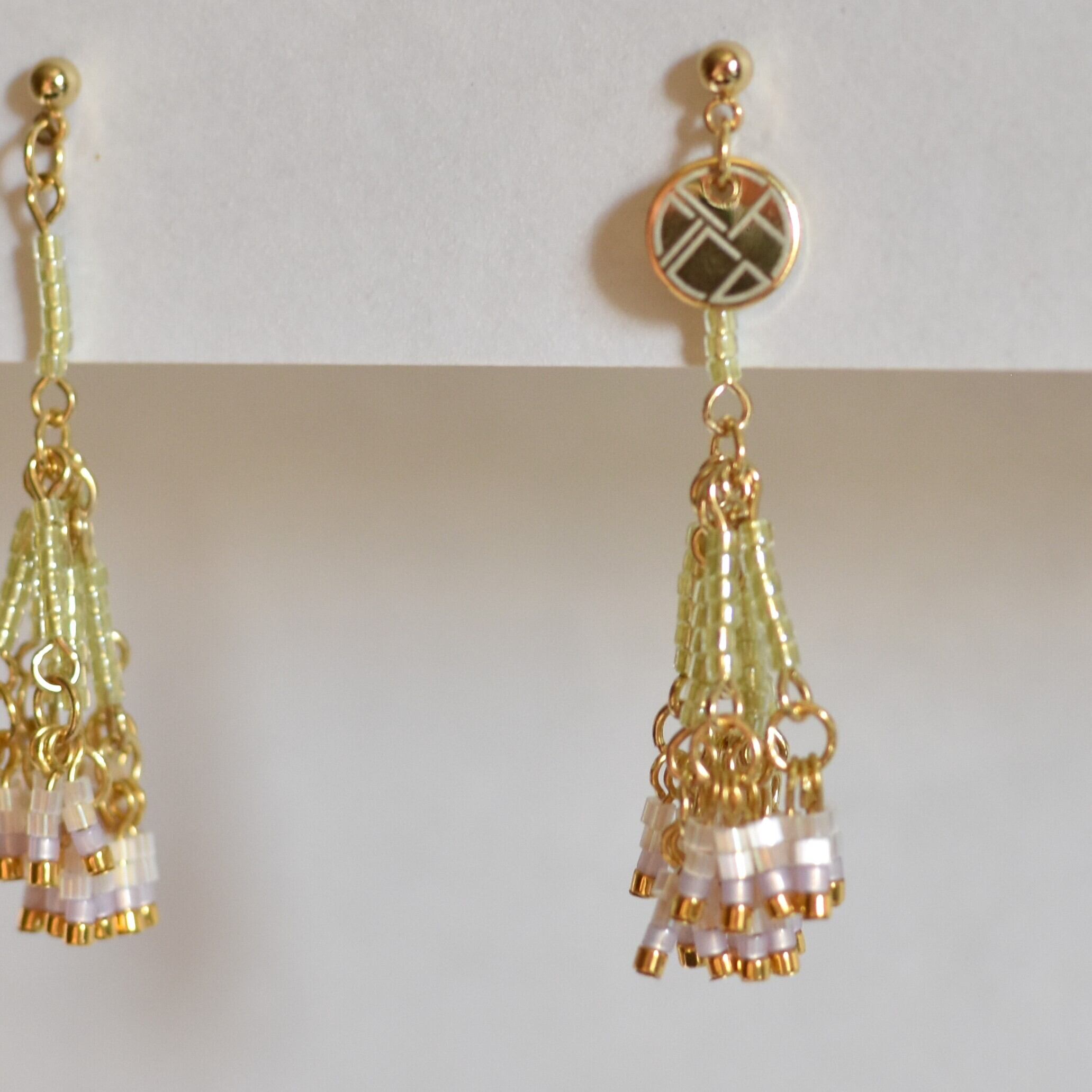 material K14GF ゴールドフィルド(ピアス金具)、SILVER925 金メッキ(イヤリング金具)、ガラスビーズ、真鍮、チタン、シリコン