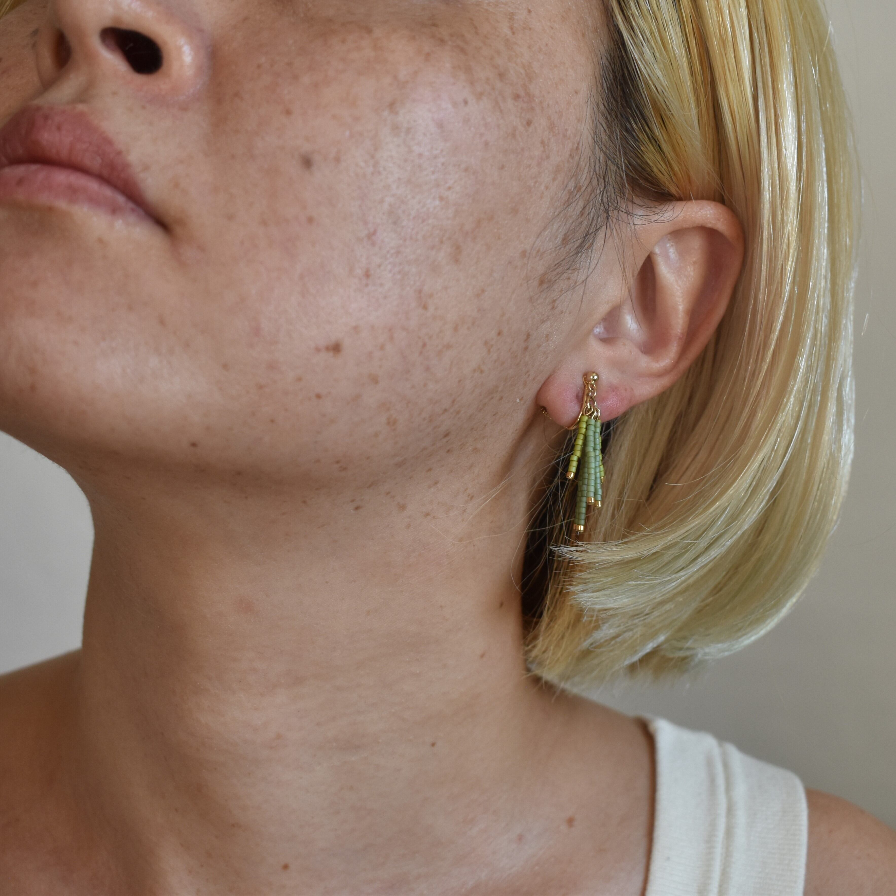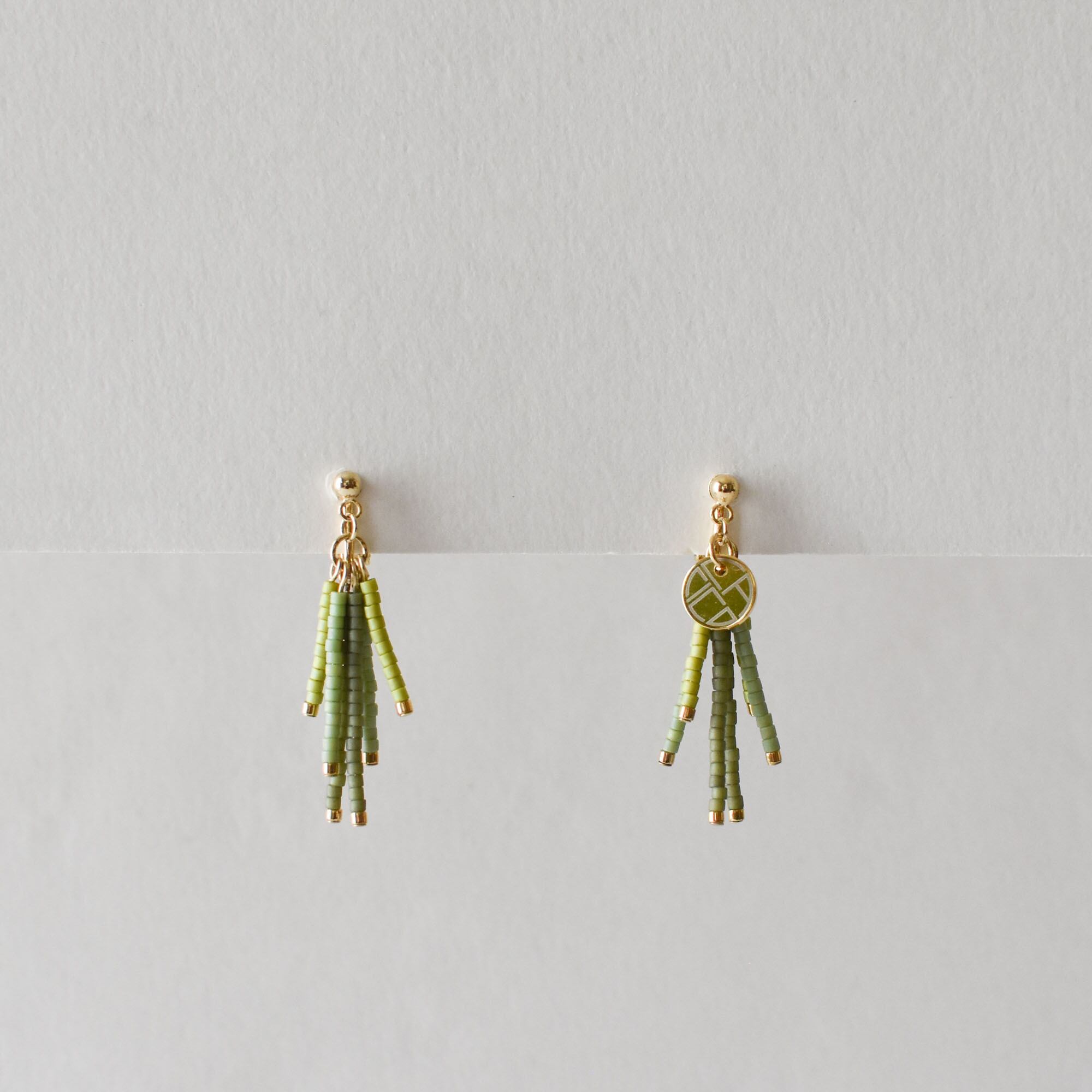 material K14GF ゴールドフィルド(ピアス金具)、SILVER925 金メッキ(イヤリング金具)、ガラスビーズ、真鍮、チタン、シリコン