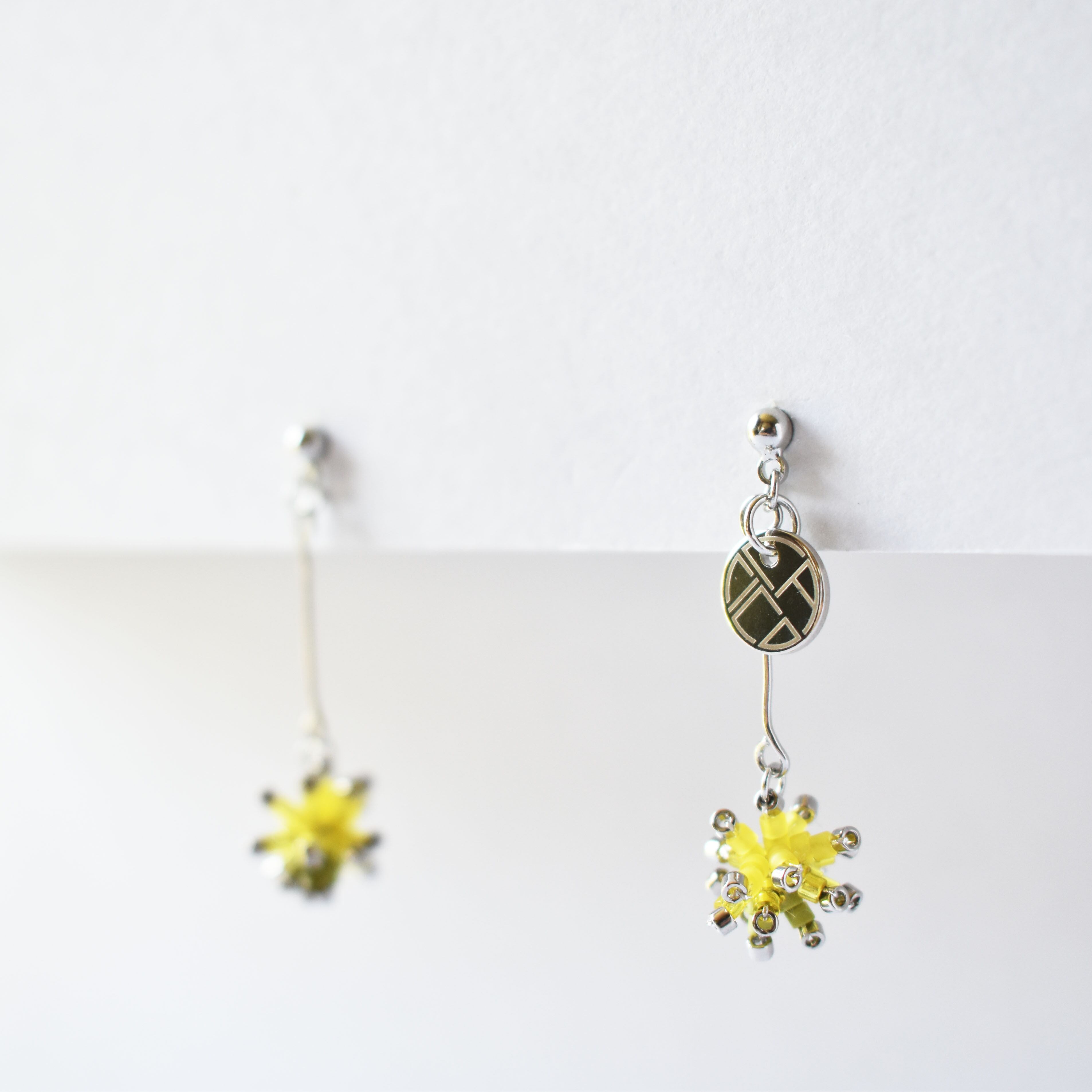 material SILVER925(ピアス金具)、SILVER925 ロジュームメッキ(イヤリング金具)、ガラスビーズ、銀糸、真鍮、チタン、フェルト、シリコン