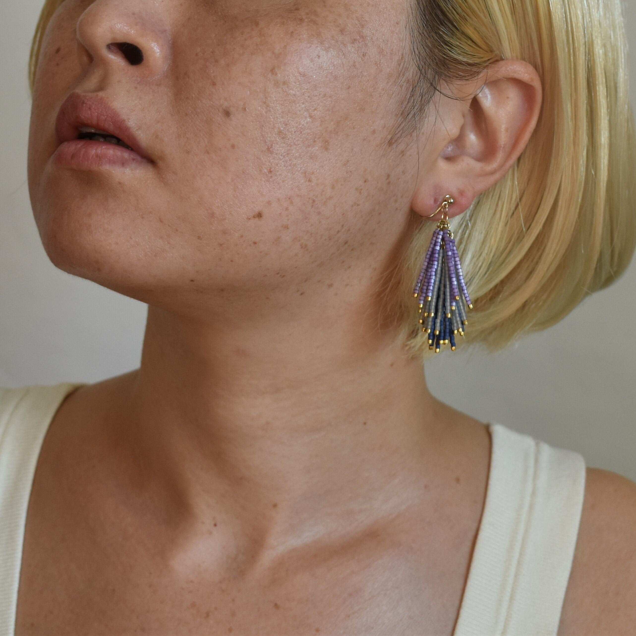 material K14GF ゴールドフィルド(ピアス金具)、SILVER925 金メッキ(イヤリング金具)、ガラスビーズ、真鍮、チタン、シリコン