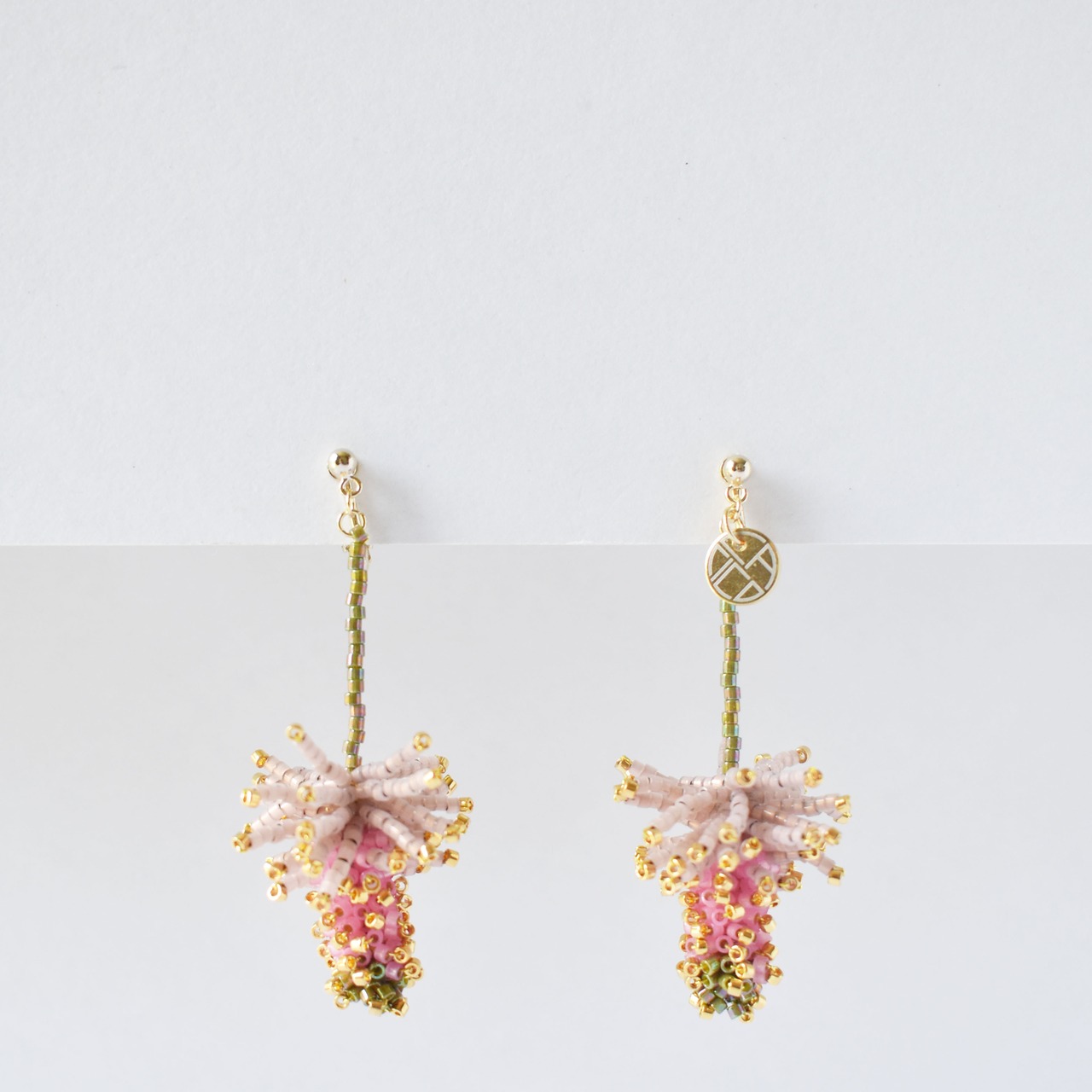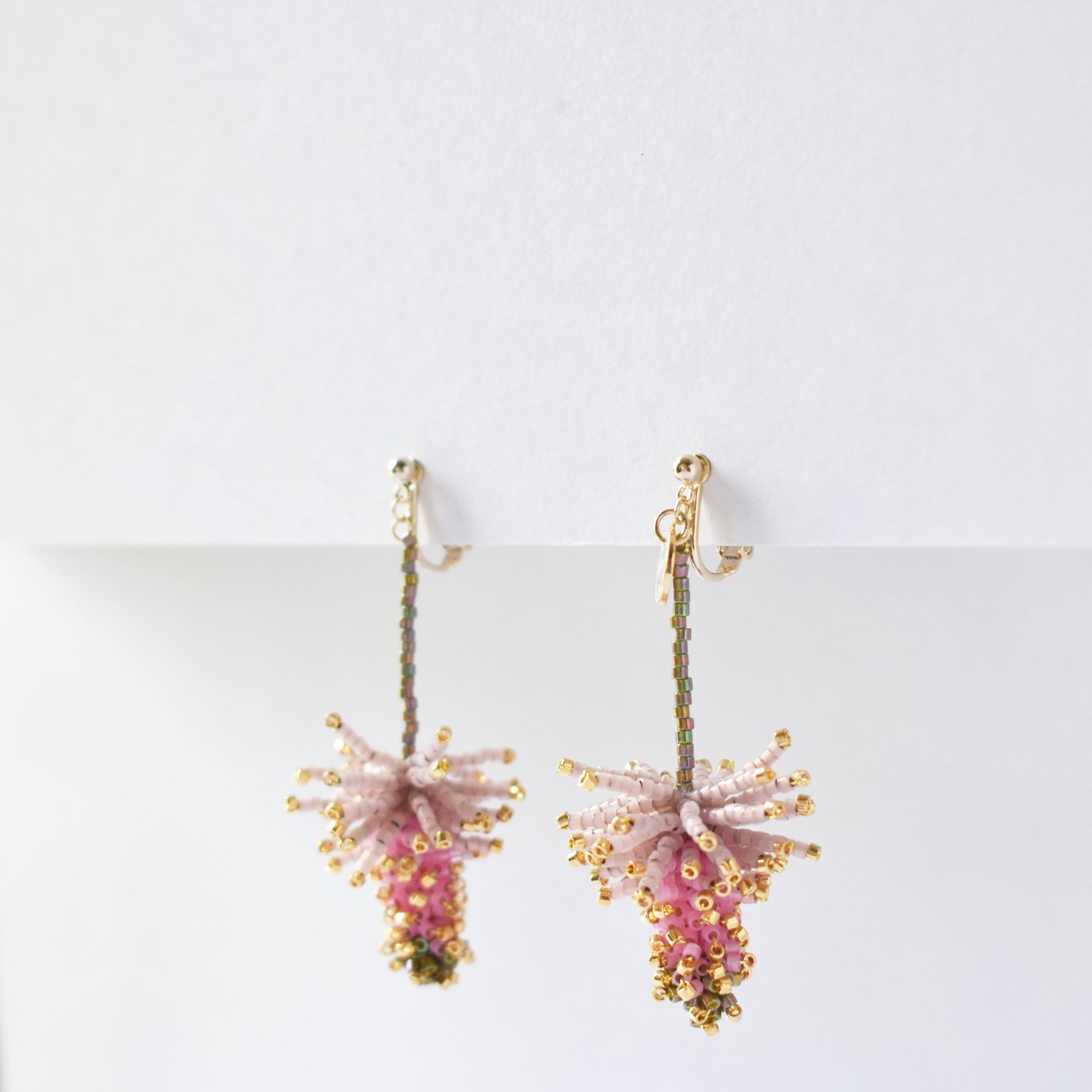 material K14GF ゴールドフィルド(ピアス金具)、SILVER925 金メッキ(イヤリング金具)、ガラスビーズ、金糸、真鍮、チタン、フェルト、シリコン
