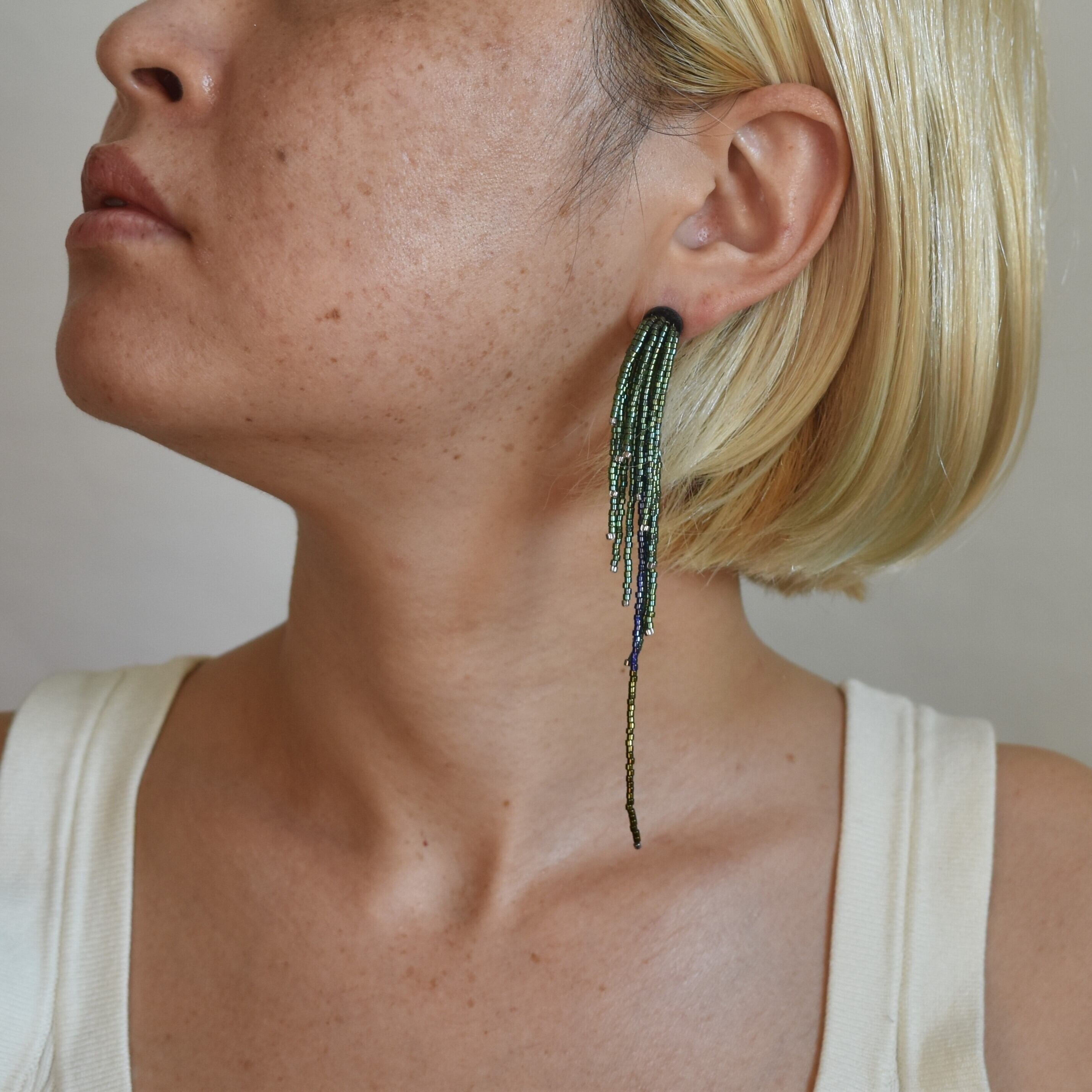 material SILVER925(ピアス金具)、ガラスビーズ、銀糸、真鍮、チタン、フェルト、本革、シリコン