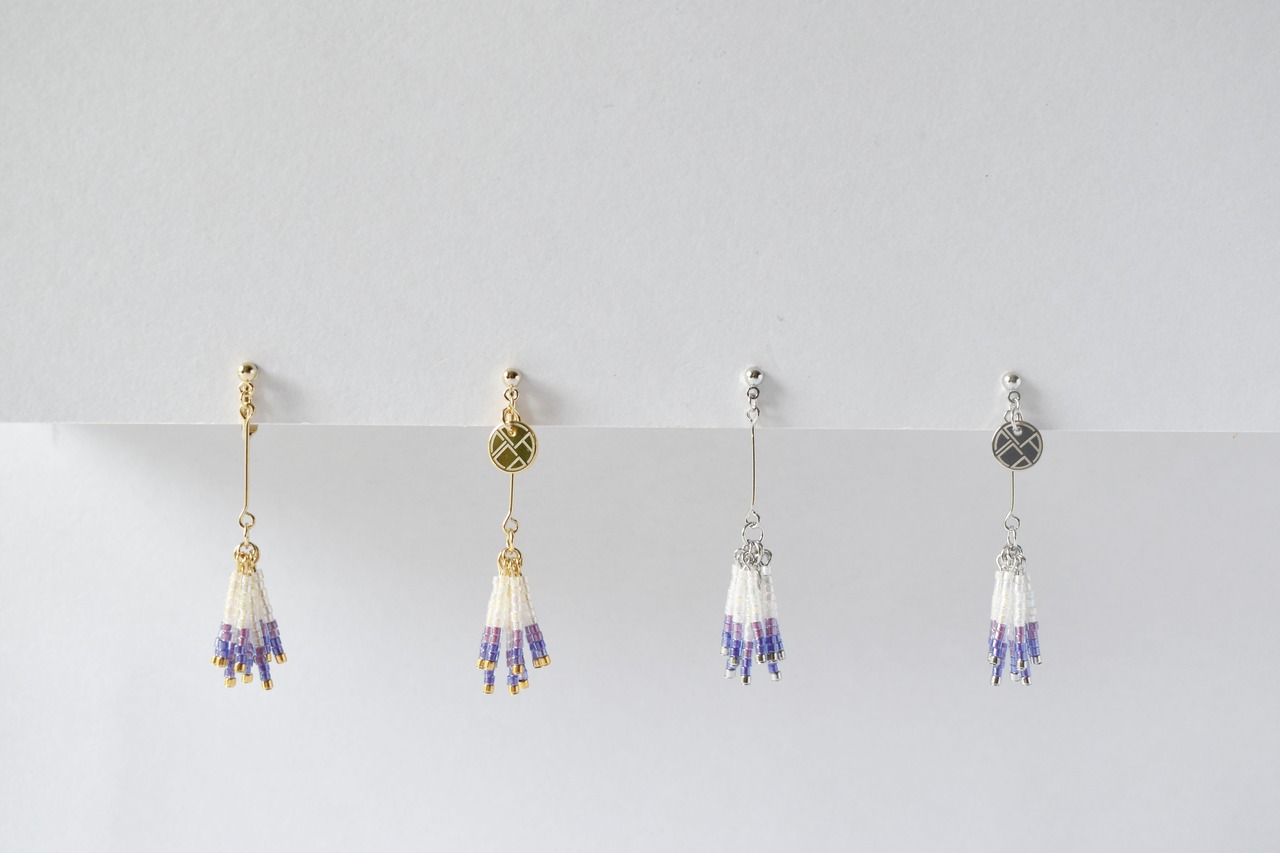 material K14GF ゴールドフィルド(ピアス金具)、SILVER925 金メッキ(イヤリング金具)、ガラスビーズ、真鍮、チタン、シリコン