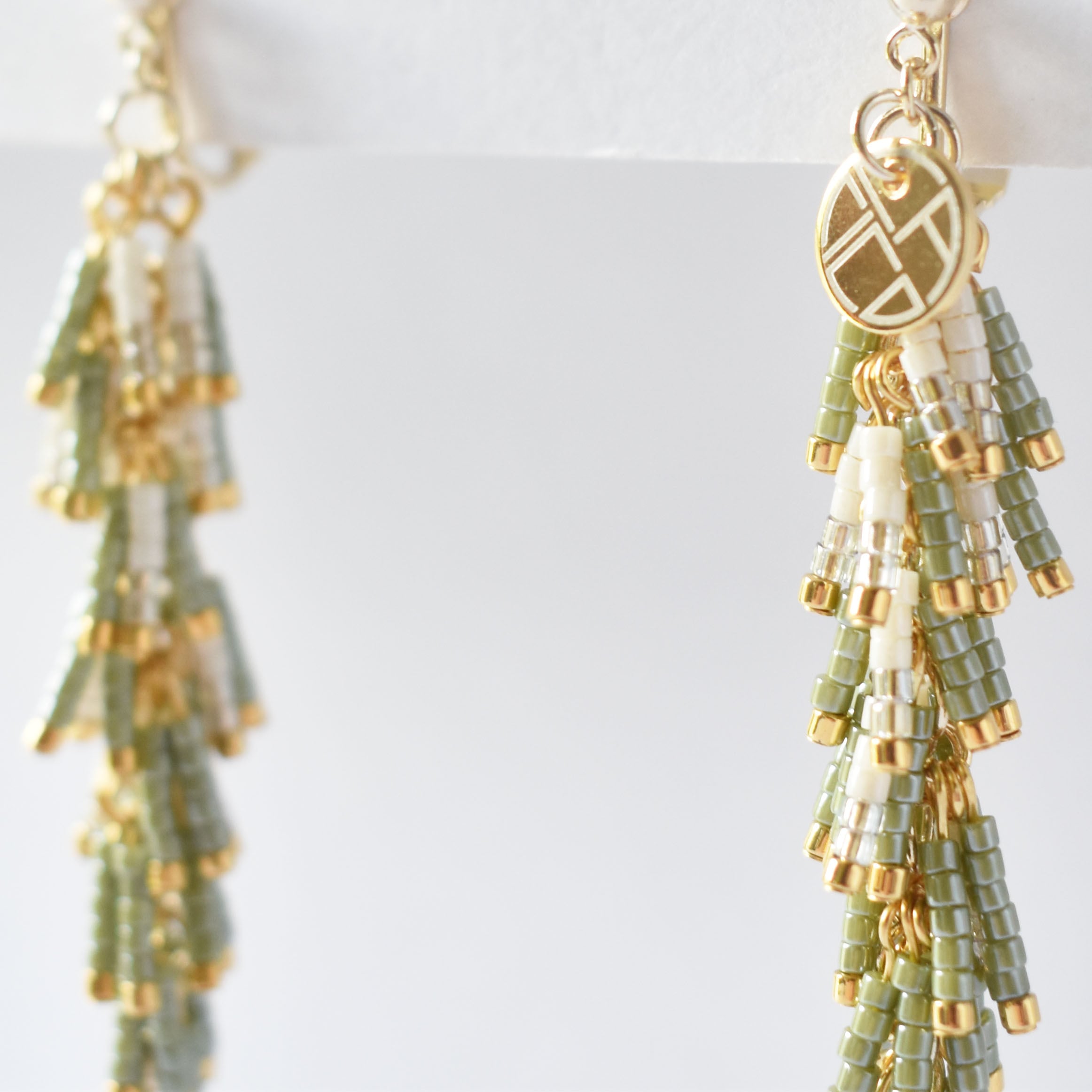 material K14GF ゴールドフィルド(ピアス金具)、SILVER925 金メッキ(イヤリング金具)、ガラスビーズ、真鍮、チタン、シリコン