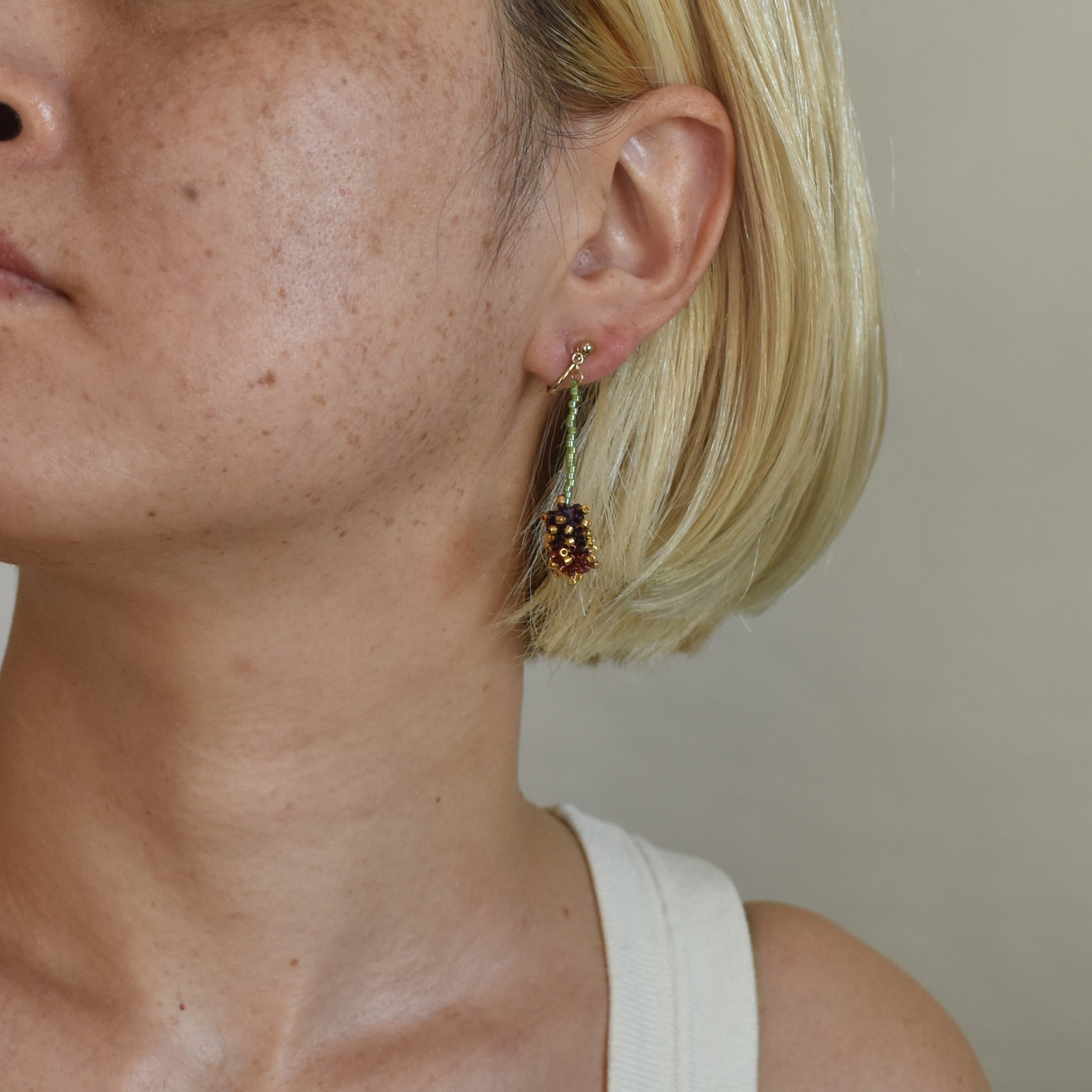 material K14GF ゴールドフィルド(ピアス金具)、SILVER925 金メッキ(イヤリング金具)、ガラスビーズ、金糸、真鍮、チタン、フェルト、シリコン