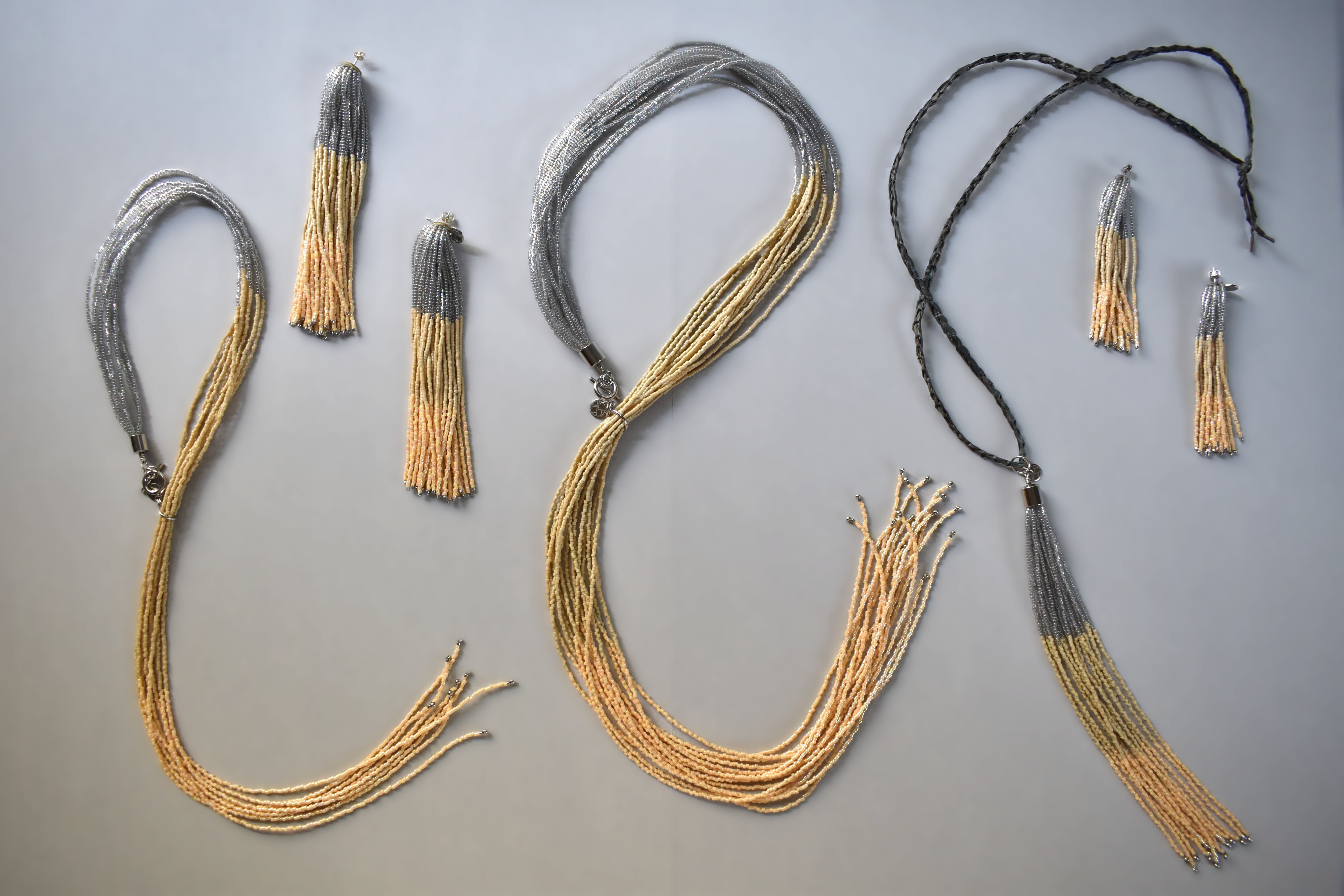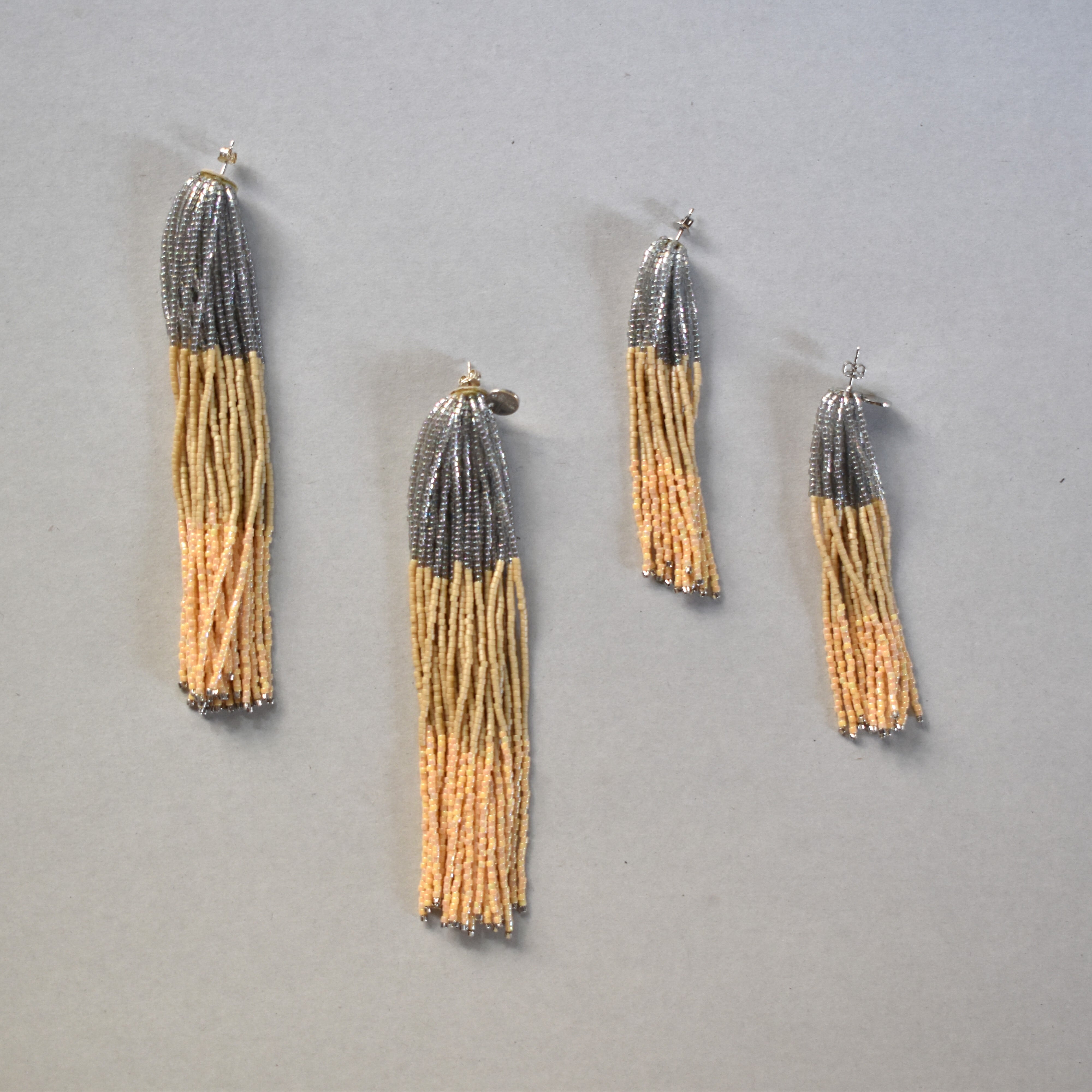 material SILVER925(ピアス金具)、ガラスビーズ、銀糸、真鍮、チタン、フェルト、本革、シリコン